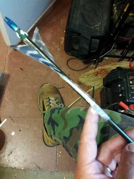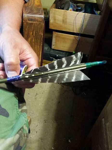 He aprendido que la rosca espiral "peluquero poled" debe eliminarse después el pegamento o pintura que se utilizó para sellar las porciones con haya secado durante la noche. Solía dejar este hilo en la flecha permanentemente. Encontré cuando en un objetivo con esta cadena en el lugar que lo mueve un poco el fletch fue causando boquetes a la forma en la paleta, pues afecta el vuelo de la flecha.