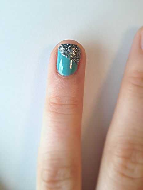 pintura el segmento superior de su estado de uñas para que se bloquea en dos colores diferentes... está bien si su línea no es completamente recta que se cubrirán en el siguiente paso