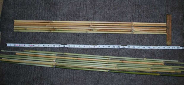 Para empezar: Habiendo recibido algunos bambú flecha hermosa de un amigo (Pseudosasa japonica creo), decidió utilizarlo para hacer unas flechas nuevas. Nunca han usado este material fino antes pero he manejado y examinó las flechas de esta especie. Debo señalar que he utilizado a nuestro primo americano, caña de río (Arundinaria gigantea). No podía ser más perfecto para el trabajo.