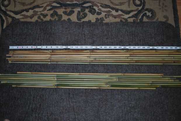 A menudo resulta sorprendente para la gente al saber que aunque el bambú se ve directamente, es lejos lo suficientemente recto para hacer una buena flecha. Selección en el campo para las secciones de nodo largo y naturalmente rectos ejes ahorrará mucho tiempo en el largo plazo. Los ejes necesitan ser verde, sin molde y error de los agujeros y corte demasiado largos (para permitir la selección del espesor perfecto en el cono).