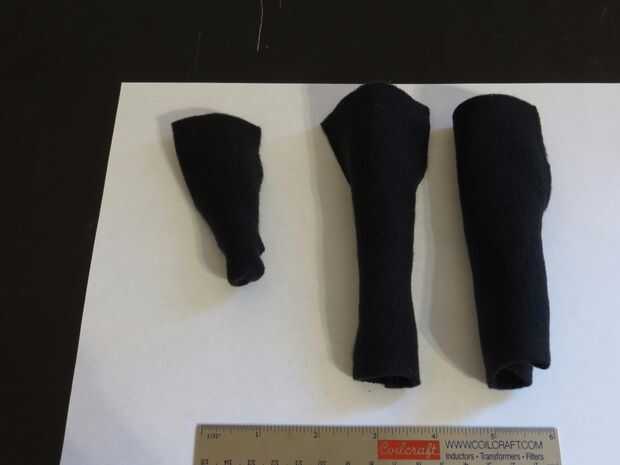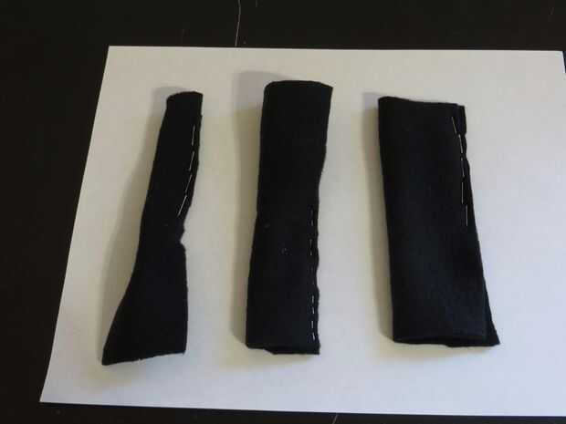 Experimenté con diferentes anchos de tela para ver cómo se ven y tratar de los bancos. Tendido (como en, no la pieza de ensayo), no fue particularmente duro, pero no particularmente fácil hacer girar un tubo hecho de un pedazo de ancho de 4 pulgadas de tela. Era incapaz de voltear la pieza amplia de 2 pulgadas de la tela de la prueba (aunque, usar grapas en vez de hilo).