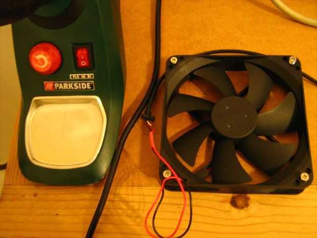 Prueba de su conector de alimentación para ver que todo está funcionando. Como nos estamos conduciendo el ventilador con una tensión más baja, sus niveles de velocidad y ruido será perceptiblemente más bajos que normal, que es una buena cosa para nuestro proyecto.