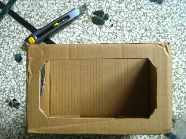Ahora corte una ventana dentro de la cara larga adyacente de la caja; Esto no es obligatorio, pero lo hice porque permite facilitar el acceso al montaje y pegado de las piezas y, bueno, porque se ve cool! ;)