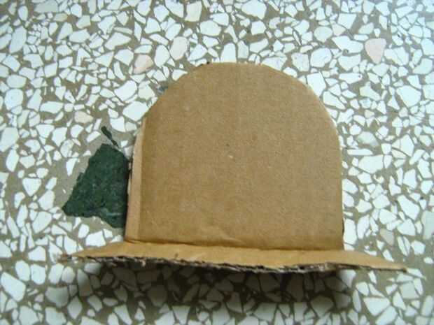 Ahora la parte cónica de la pieza de cartón que quitó antes de la curva y hacer un «stand» que dará soporte a la parte estrecha del juguete.