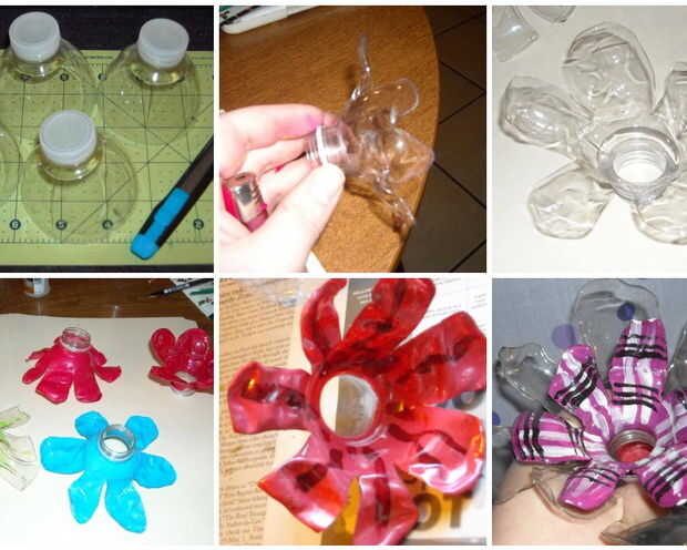 Divas en bricolaje ottoman tapizado taller ayer nos hablamos de reciclaje. Una de las señoras mencionó cómo hacer favores de partido usando la base de una botella de plástico. No entender lo que ella significó, experimenté con diferentes formas y baj
