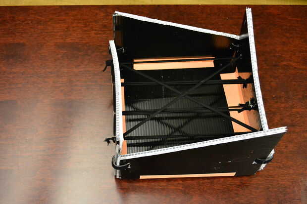 Ej.: si empezaste en el agujero #1, pase a través de orificio #4 en la pared opuesta. Repita con la última parte de la banda pero la agujeros interruptor que pase a través. Quiere crear una 'X' a través de las bandas.