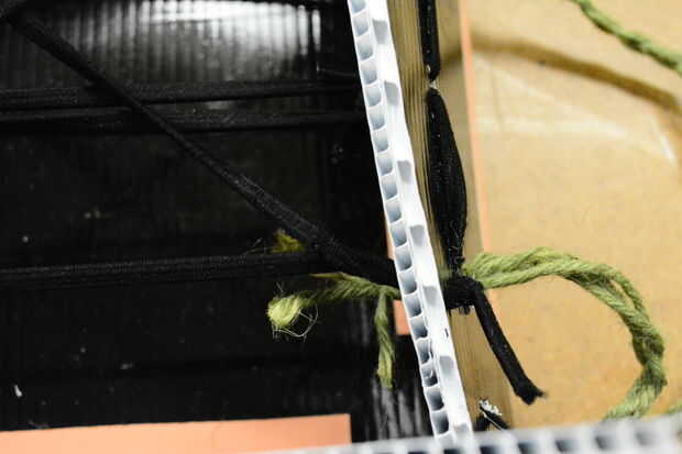 Tomar al doble y cortar dos, secciones de 2 pies. Darle a la manija un poco grueso, nuestro trenzado juntos con 3 secciones en lugar de dos. Dejar 4 pulgadas al final de cada trenza y enrosque un extremo thr ough el agujero #1 perforado y el nudo en el interior de su alcohol de la flexión, luego repita con el otro a través de un orificio perforado #4. Esto hará que un mango de lazo. Repita en el lado opuesto. Asegúrese de cortar el exceso de cordel después de atar los nudos en el interior. Los mangos pueden entonces llevará a cabo simultáneamente para apoyar tu bebida Flex!