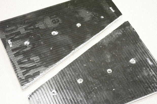 Tome el pedazo de dos pared y a partir de la esquina más baja de la pieza inclinada, medir directamente a través al otro lado. Marca 4 agujeros, 2 pulg., a partir de ¾ pulgadas de la sección de bucle de Velcro cortada. Utilice la broca de 1/8 para perforar agujeros que tendrá más adelante las vendas elásticos del pelo.