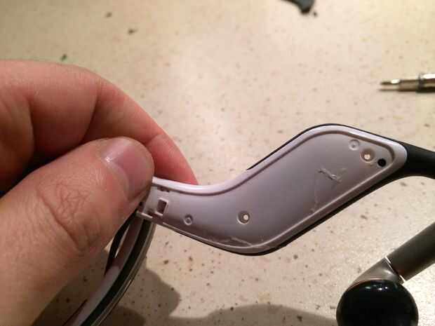 Quitar goma de dentro el auricular izquierdo. Luego Desenrosque los tornillos y quitar barrera de humedad de la goma.