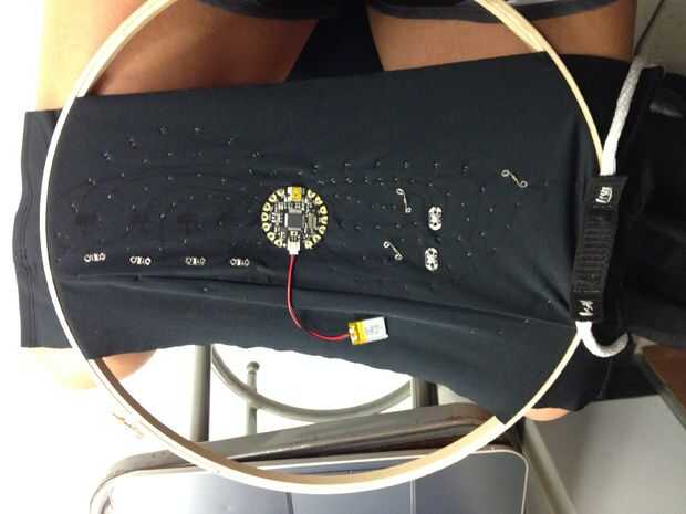 Coser flex sensor, LEDs y botones según diseño de circuito