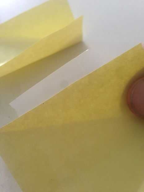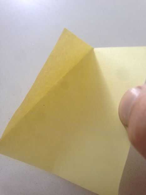 Hacer estos pliegues en dos plazas de Post-It para que tenga dos piezas idénticamente doblados de papel.