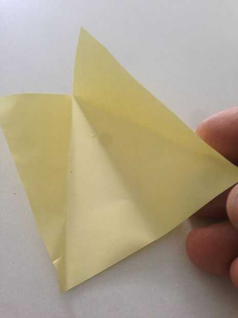 2. Un pliegue agudo desde la parte superior del pliegue divide a la izquierda enfrente del doblez esquina de la Plaza (arriba, imagen de la izquierda).