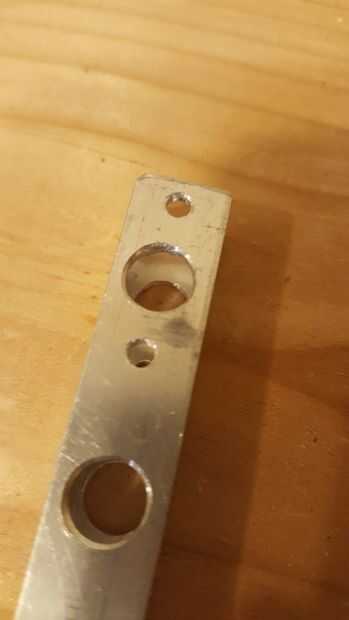 Corte 2 piezas de tubo cuadrado de aluminio de 255,6 mm. Luego taladre 3 agujeros de montaje del motor, el mío es de 19 mm., con un gran agujero en el centro del eje. Taladré agujeros de reducción de peso en cada lado la viga 1 pulgada una de otra. Sin embargo, al final, sólo quitó 40 gramos, que no es mucho para un montón de trabajo. Recomiendo no hacerlo. Si, usa refrigerante.