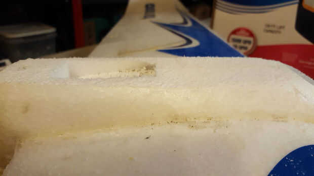 La sierra hecho irregular en el avión. Pozo de arena trabajos de papel para hacer la superficie mucho más suave.