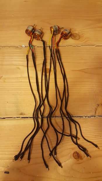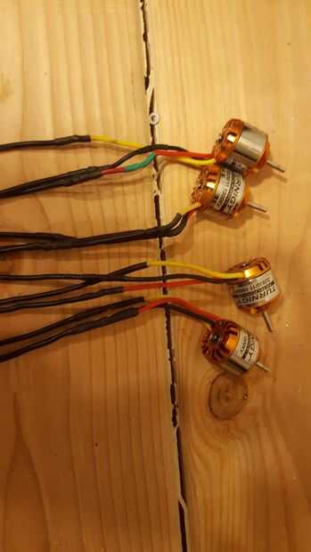Mis motores ya han soldado extensiones en ellos, pero sería más fácil y mejor dar salida a los cables de la batería. Sólo asegúrese de que son tiempo suficiente para que los cuatro motores. Luego de la soldadura de todos los conectores de bala a la esc.