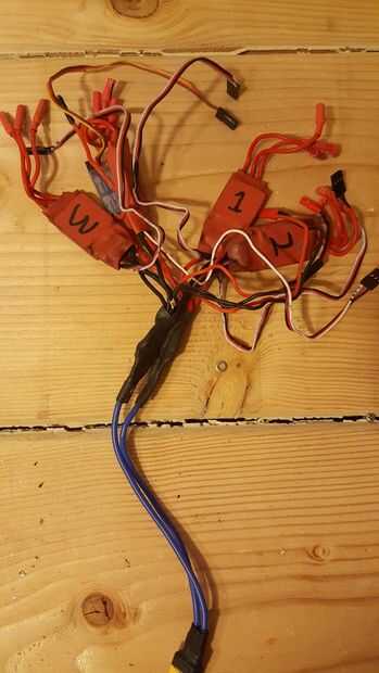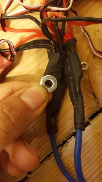 Usé una arandela más grande para soldar todos los cables de potencia de salida con un único cable para la batería. Tuve dos cables extra en caso de que lo necesitaba. Luego soldar el conector de la batería en estos dos cables.