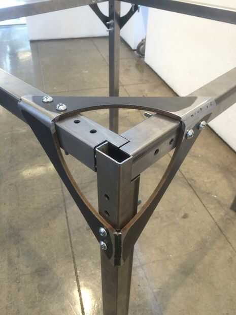 Este proyecto explora colaboraciones entre fabricación tecnológica y arte manual cuidado con entendimiento de comportamientos materiales específicos de acero. La cruda presentación del material se convierte en intencional porque expone una variedad de procesos de fabricación (soldadura, esmerilado, taladrado, fresado... etc.). Tolerancias mínimas también son cruciales para la Asamblea General y la función del sistema.