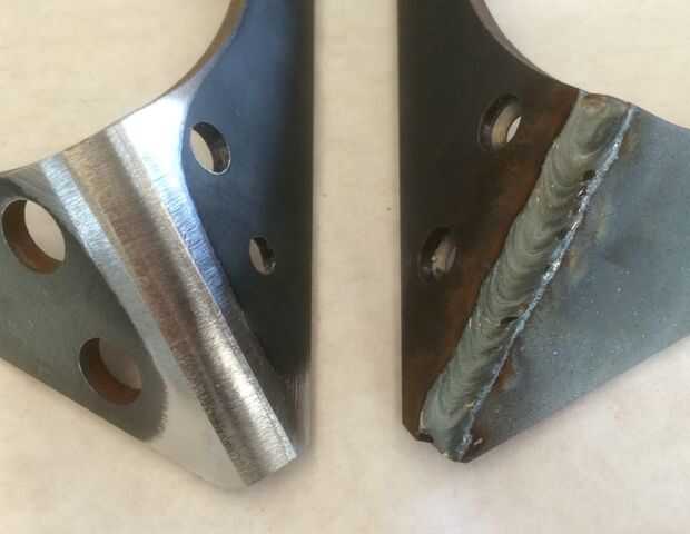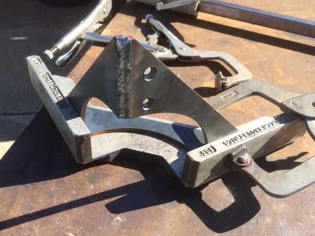 Cada juego de tri-braket consta de 3 partes de agua-jet individuales idénticas con dos orificios de 1/4". Procedimientos de perforación excesiva en el taladro son tapas de pernos para descarga en el acero. Después de la perforación y limpieza, soldadura mig en los bordes de los soportes tienen que ser 90 grados. Paso final sería pulir la soldadura a una esquina lisa y fileteada.