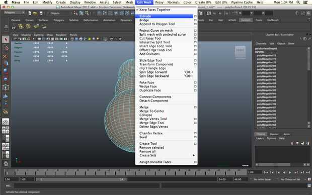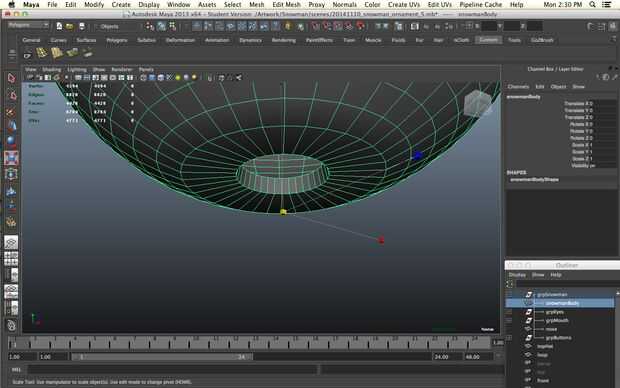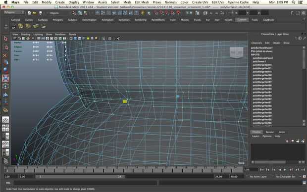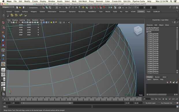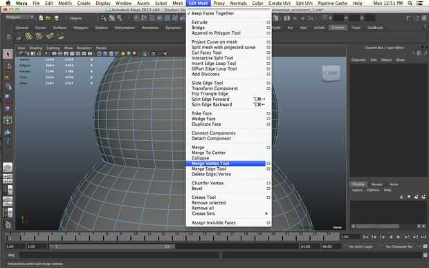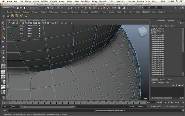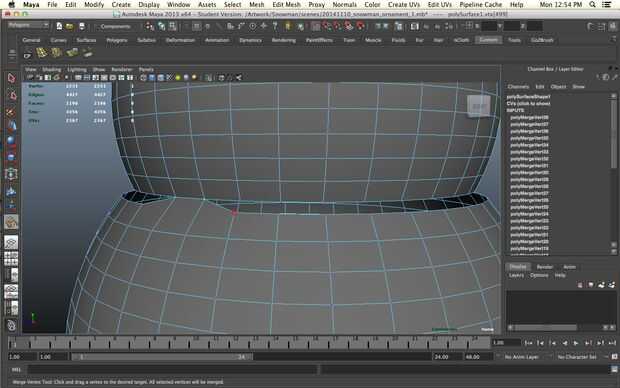 Seleccione todas las esferas. Vamos a combinarlos para formar una malla para la cabeza y el cuerpo. Ir a la malla > se combinan para hacer una red unificada. Seleccione el vert en el borde de una esfera y fusionar a la correspondiente vert en la esfera adyacente para cerrar los agujeros. Me gusta usar el Edit Mesh > herramienta de fusión de vértice frente a la fusión al centro de la herramienta porque generalmente wan para ajustar los verts de la malla, uno al otro en lugar de tener ambos satisfacer a mitad de camino entre unos a otros. Tenga cuidado de que no combinar el punto equivocado. Revise muy cuidadosamente. Además, verifique el hueco. Tuve que hacer un ajuste porque el hueco estuvo a punto de penetrar en la parte exterior de la malla donde se unen la cabeza y el cuerpo. Puede utilizar seleccione suave para pasar la cabeza y el torso por lo que no es stock directamente. Le dan un carácter.