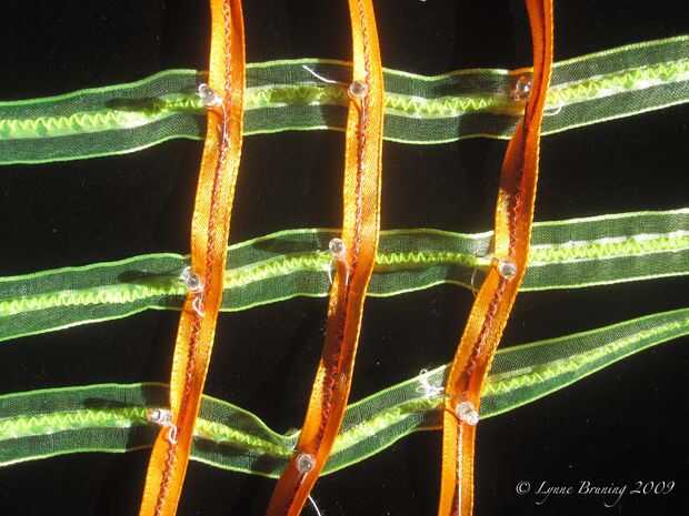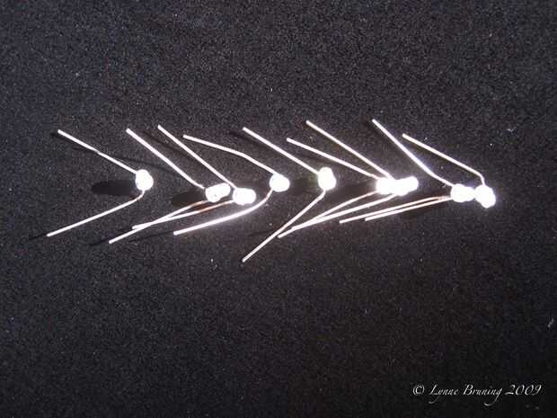 Deslice la pata negativa en rastro negativo zig-zag pinchando a través de la cinta para llegar al canal de zig-zag de hilo conductor. La pata negativa a través del contacto que hace de canal con el hilo conductor de la alimentación.