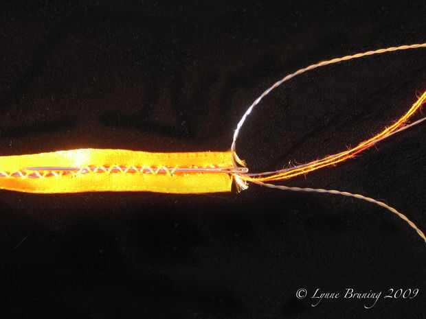 Pone el principal rastro negativo en las cintas de matriz negativa con el tacto del hilo conductor.