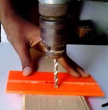 ---> taladro ahora un pequeño agujero en la abrazadera de mesa de dibujo para fijar con el tablero plástico