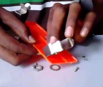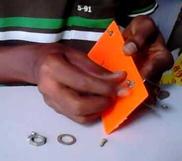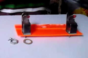 y conecta el clip de tablero de dibujo en el tablero de plástico con un tornillo y una tuerca y se.