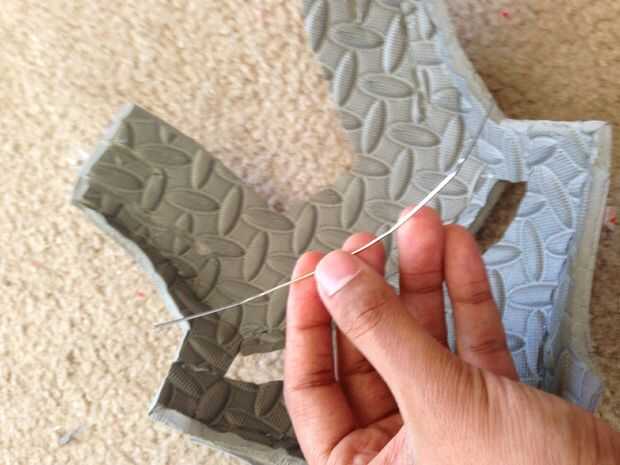 Para la elaboración, debe cubierta la mitad del corte con el pegamento, insertar el clip y esperar que se enfríe y endurezca. Luego agregar el pegamento caliente al resto de la ranura e inserte el resto de la clip. Es fácil de insertar la segunda mitad manteniendo sólo la primera mitad a través de la espuma. No te preocupes de deformar la espuma porque agregando el clip lo hace muy fuerte, y conservará la forma del clip.