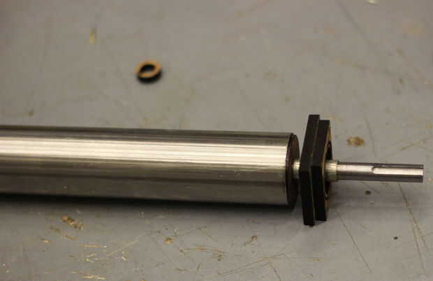 4. Deslice el otro componente centrado en el otro lado del eje y se fijan también en el tubo. Asegúrese de que el cubo (gap en el componente centrado) pasa la clave de equipo!