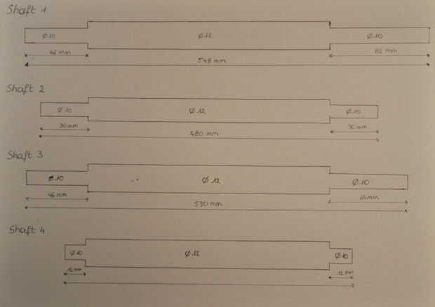 Los ejes deben girarse de diámetro 12mm a 10mm en algunos lugares. Para ello, necesitamos un torno.