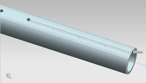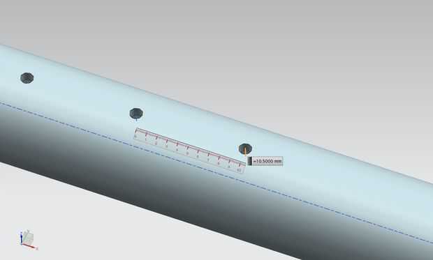 En total, se necesitan 45 agujeros con un diámetro de 1,2 mm. La primera perforación debe ser aburrido 40mm desde el extremo del tubo. Entre cada agujero es un espacio de 10,5 mm.