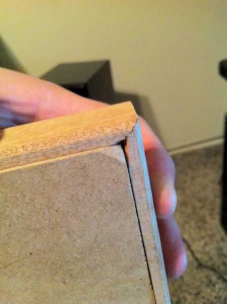 Corte lento! Si no tienes cortes de inglete mal y montaje de los bordes será un poco más difícil. Que todavía tendrás que ajustar las esquinas con un poco de papel de lija para obtener el mejor ajuste. Vea la Fig. 2