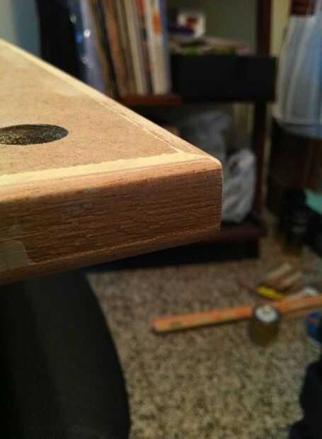 Lije la masilla para madera para obtener la superficie, bordes, esquinas, etc. incluso como posible. Puedes ver en la figura 5 donde tuve que rellenar mucho para desquitarse el moldeado y MDF.