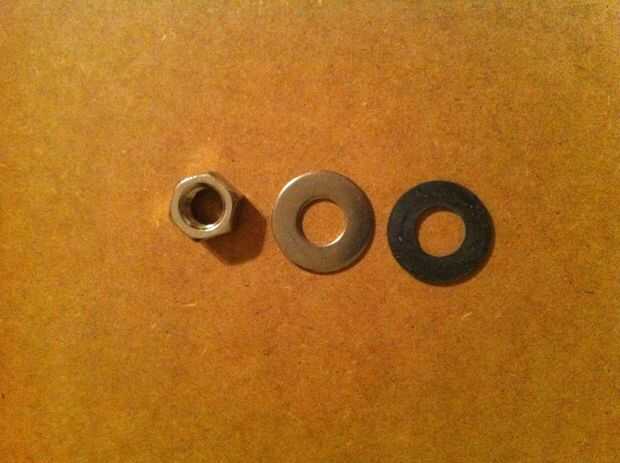 2) resolver su hardware. Para cada plataforma, necesita 6 ea. tuercas, arandelas planas y arandelas de goma.