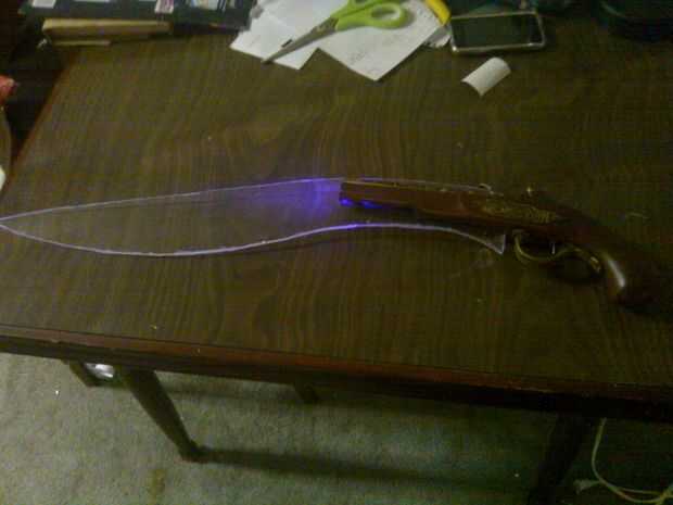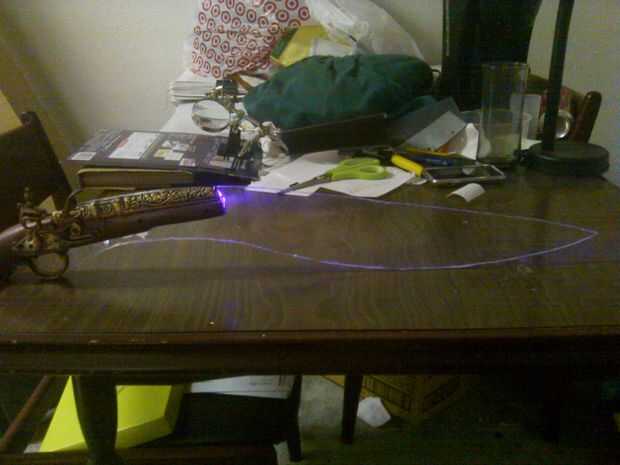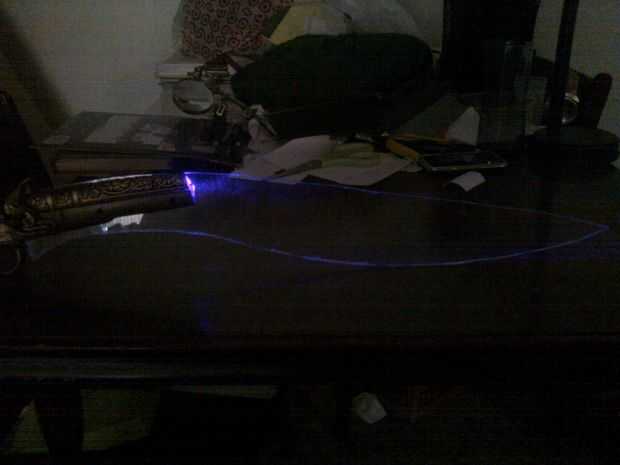 Pasé alrededor de 15 USD en la hoja del plexiglás. Es robusto y con la chispa proporciona estructura, tiene cierta influencia. No trato de golpear a nadie con él. Usé un LED púrpura de radioshack, que vino en un pack de dos y fue de cerca de 3 dólares. Sólo se utiliza en LED porque tenía ya usé el otro para un proyecto diferente.