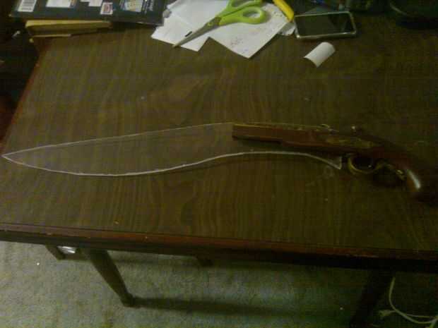 Compré uno de eso barato de plástico generaliza Halloween (~ 5 USD). Aquí es un fantástico ' ible en pintura generaliza y armas en general:
