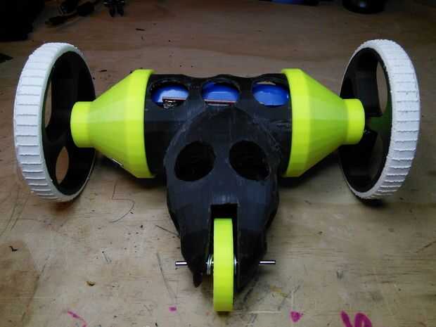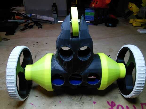 Cuerpo de CyliBot, ruedas y llantas son completamente 3D impreso. El aspecto más difícil de la impresión es impresión los neumáticos con suave PLA. Más sobre esto más adelante.