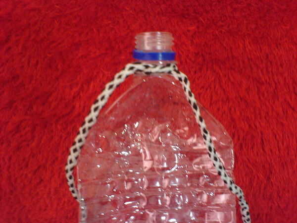 entonces ajustar y anudar una cuerda o soga por debajo de la tapa de la botella.