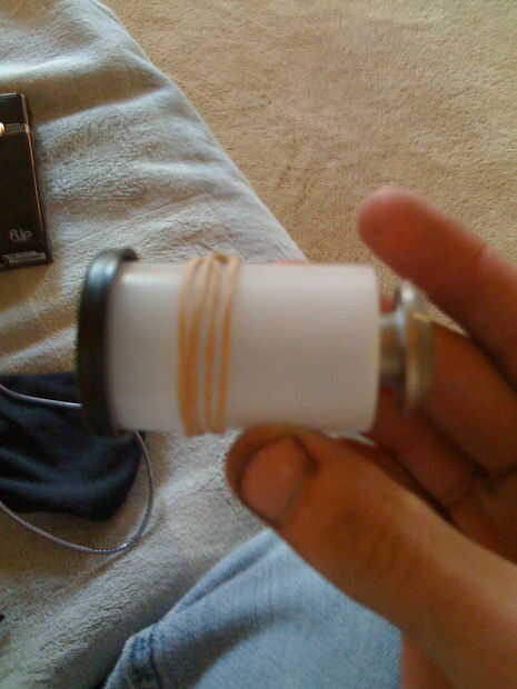 Para almacenar el "objetivo" cuando no la usas, el cartucho de la película nos ofrece un lugar agradable. Las gomas pueden colocarse alrededor de la lata y la lente se puede Desenroscar y colocar segura dentro de la lata de película cerrada. Usted podría dejar el lente montado normalmente, pero depende de cuánto usted confía en el área donde usted está colocando el frasco.