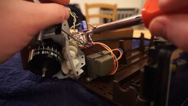Así que vas a hacer lo acabo de hacer a la inversa. PLOP el bulbo en la ranura para soporte de lámpara cosita y cuerdas por el mismo camino que antes. Utilizar alguna cinta invisible que tiene un equipo de marketing deshonesto para fijarla en la parte inferior del mecanismo del reloj. Ahora tienes que soldar los puntos. No se asusten ahora. Usted está haciendo grandes. Para mi primera vez soldar en 10-15 años no hice nada mal. Bueno para ir!