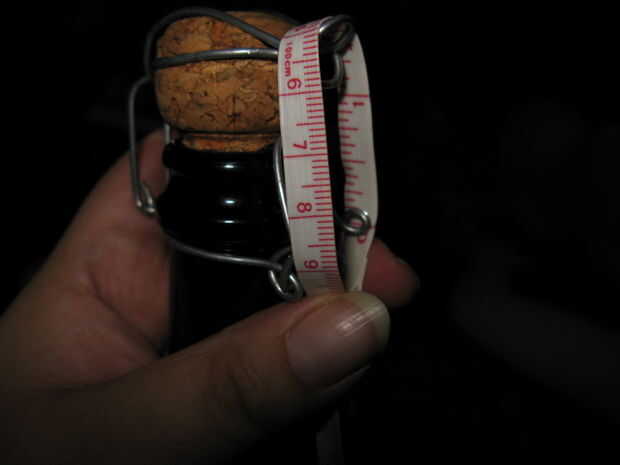 Ponlo en la punta y hacer una marca en el lugar donde la boca de la botella.