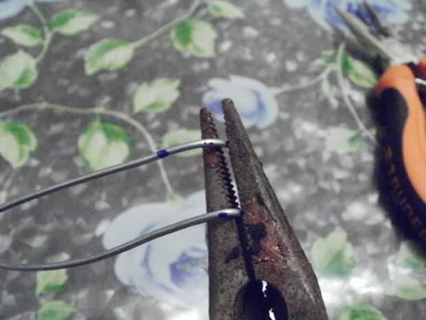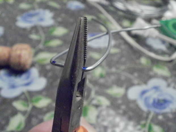 Medir 2 cm. desde la parte superior de la grapa grande y doblarlo por la mitad. Hasta que tenga un pequeño lazo.