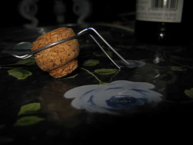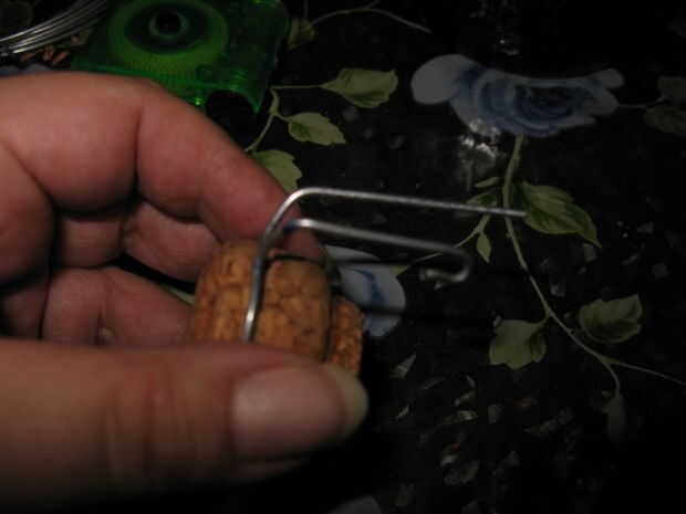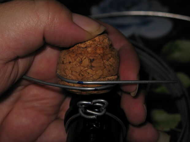 Ajustar el cable con el corcho y hacer una marca en el mismo lugar donde la boca de la botella.