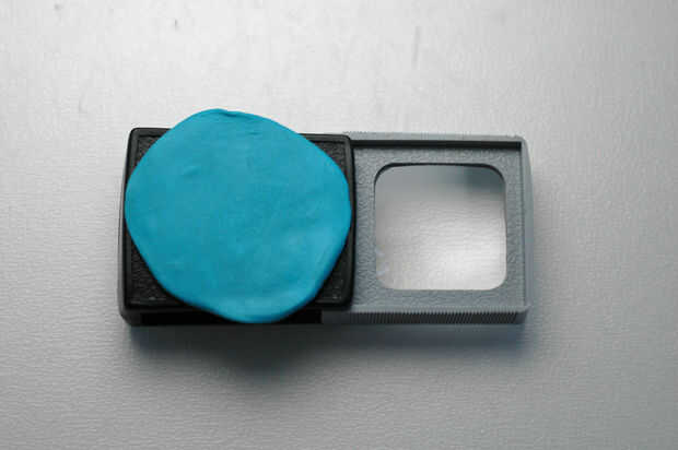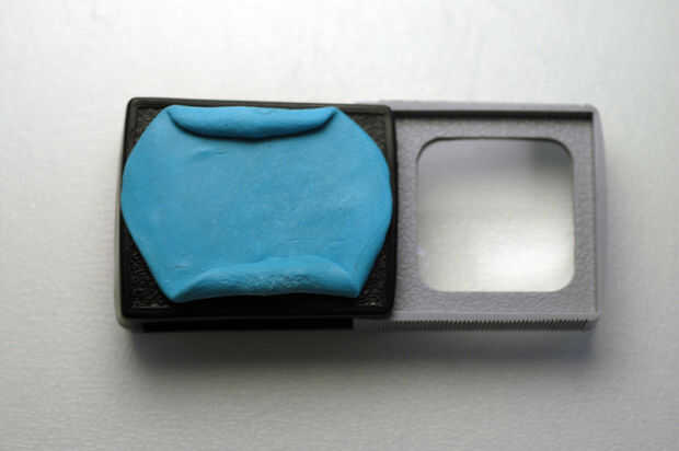 Posición el cartel masilla en la caja de lente de mano cuelga así un poco de la parte superior e inferior. Entonces, los lados de la masilla hacia el interior del rodillo. Esto mantienen la lente plana a la cámara.