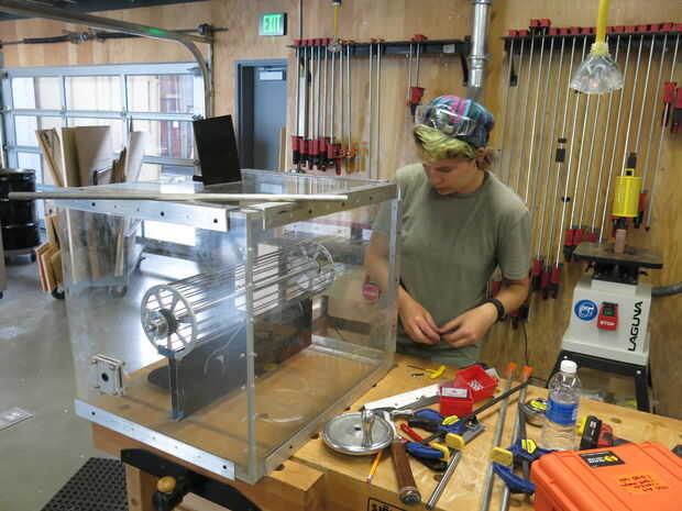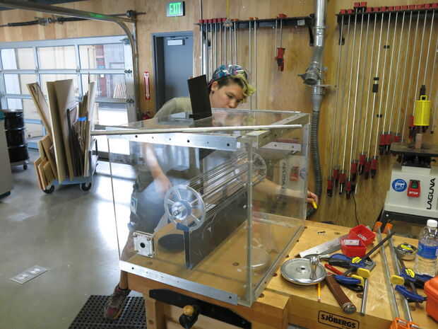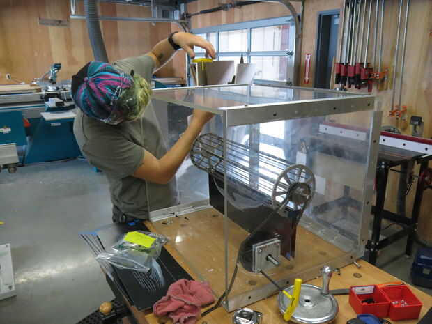 Tiempo para probarlo todo. El cuadro tuvo que ser desmontado parcialmente para insertar el eje y los cojinetes, pero cabe muy bien. Los paneles fueron Unidos con tornillos de Chicago. No se olvide de añadir loc-tite a sus tornillos o uno rattle off y causar algún daño.
