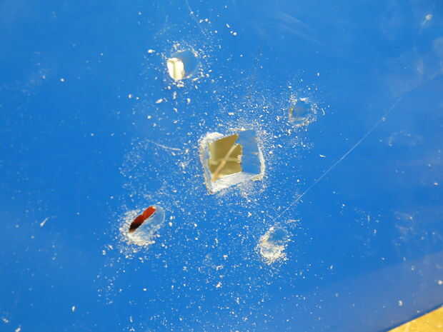 No pude obtener el chorro de agua para cortar mi perno patrones de agujero. Resulta que 1/2 de acrílico es un material muy frágil, y hay una opción especial que rampas la presión hacia arriba lentamente. He intentado cada combinación posible de valores, pero el jet mantiene obstrucción. Así que al final que terminé cortando encima de la mesa vio en 15 minutos. Puesto que fue todo hecho a mano, los agujeros debían ser mano perforado así.