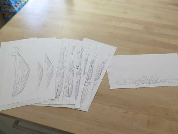 Hice todos los dibujos originales a mano, en la exploración y formato/limpieza de les. Ballenas, ballenas, ballenas. Si es más cómodo, se pueden preparar archivos totalmente en la computadora en programas como coreldraw, illustrator o photoshop.