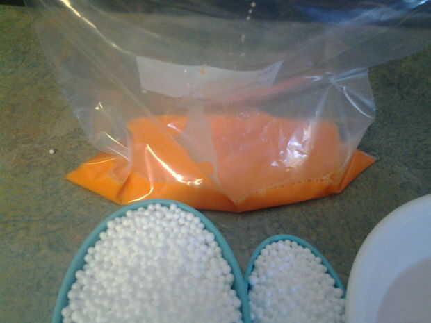 Vierta la mezcla de pegamento en la bolsa de cierre zip,