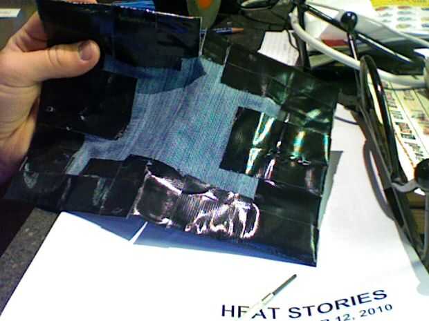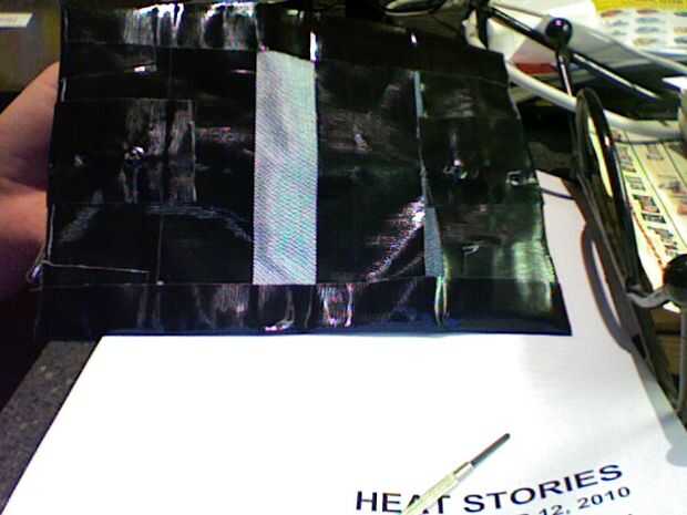 * Básicamente desea suficientes capas de cinta adhesiva alrededor de los orificios de la cuerda para que nada RIP, y para que no tire de la cuerda por los orificios.