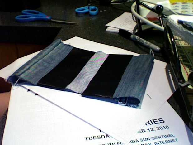 5 a continuación encuentre el centro de los bordes doblados. Palo de algunas pulgadas de cinta sobre la zona, asegurándose de que usted consigue en el interior y fuera de la costura. Esta cinta será reforzar aún más las zonas donde la cadena irá a través.